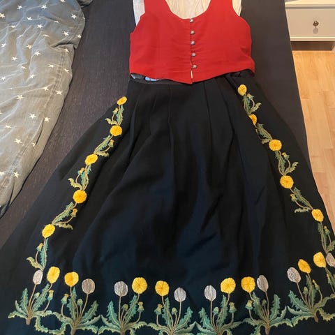 Bunaden har det gamle sølvet og er med cape. Fremstår ny.