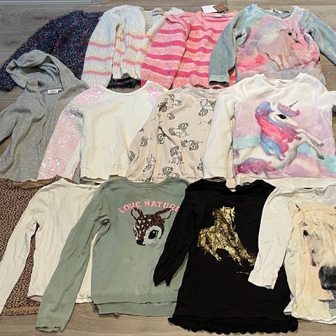 Totalt 38 plagg, noe ubrukt og noe med lapp.