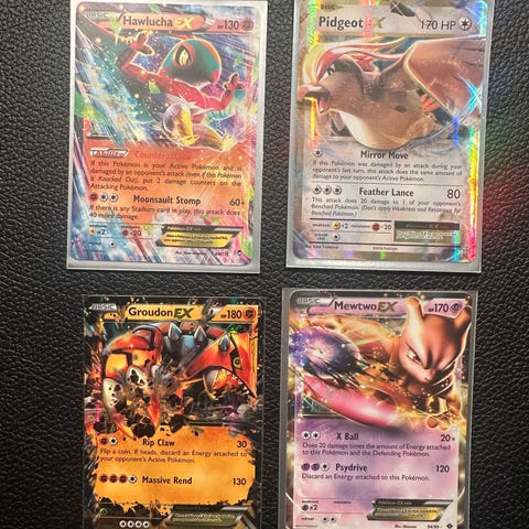 Pokémon Trading Card Game boosterpakker fra forskjellige serier inkludert Sun & Moon, Steam Siege, Breakpoint, og andre. Pakker inneholder ulike kort for samling og spilling.