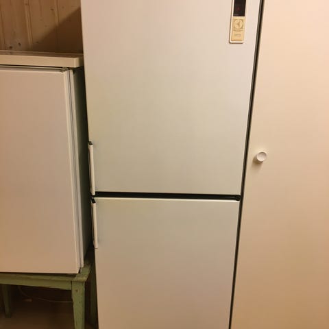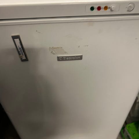Whirlpool fryseskap. Fryseskap i standard størrelse med hvit farge. Egnet for oppbevaring av frosne matvarer. 60L. En skuff ødelagt i fronten.