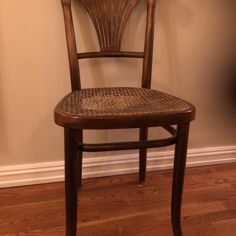 2 stoler, en toseter og ett bord. Møbelsnekker har utført oppdatert liming av deler da det ikke bruk av skruer / spiker, men gammel håndverker metode. Settet antas å være fra slutten av 1800 tallet / starten av 1900 tallet. Medfølgende puter er laget / tilpasset i senere tid. Opprinnelig bryllupsgave, men ifbm ommøbleringen har vi ikke funnet ny plass. Bud ønskes!