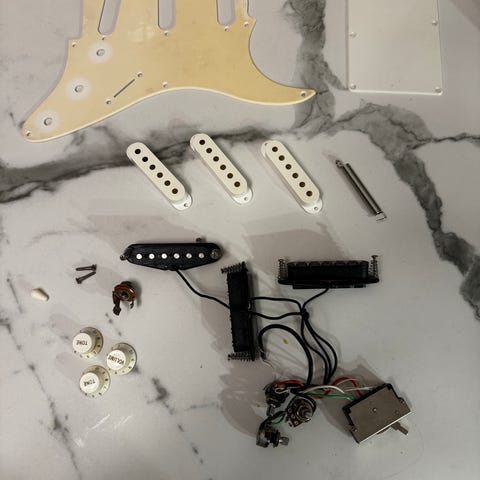 Har 3 stk. Pickups til Stratocaster. Fikk de sammen med en gitar jeg kjøpte for noen år siden. Tidligere eier hadde byttet ut disse med Obsidian Wire pickupsystem. Husker ikke fra hvilken gitar det var(hatt så utrolig mange) Den ene skal visst være en Fender pickup. De 2 andre tror jeg er Fishman, men ltt usikker. I hvertfall er jeg sikker på at de er av god kvalitet. Garanti: Blir du ikke fornøyd kan du sende de i retur og få pengene tilbake.