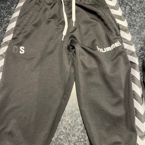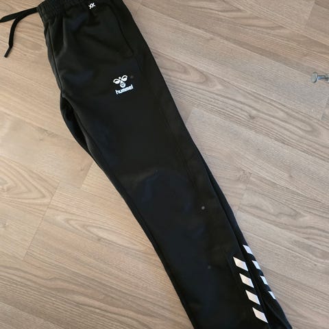 2 stk mørkeblå hummelbukser. 1 med glidelås i beina, og 1 uten. Begge er str S og knapt brukt av jente som overtrekk til/fra trening.