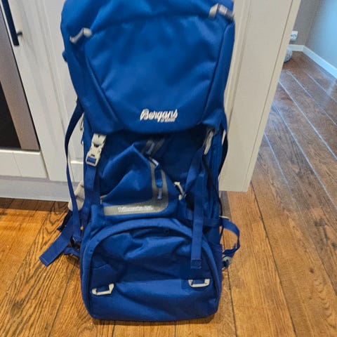 Mountain warehouse 65L tursekk i fargen pale green. Sekken har en kapasitet på 65 liter og er utstyrt med flere justerbare stropper, polstrede skulderremmer og hoftebelte for komfort ved bæring. Den har også egne lommer og festepunkter, samt kompatibilitet med vannblæresystem (H2O). Sekken er egnet for tur- og friluftsaktiviteter. Kjøpt i England. Selges fordi den ikke blir brukt, som ny.