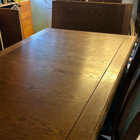 Pent brukt spisebord med 2 i leggs plater på 40 cm hver.