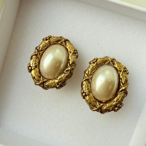 Vintage halskjedeklips/anheng/brosje med perle