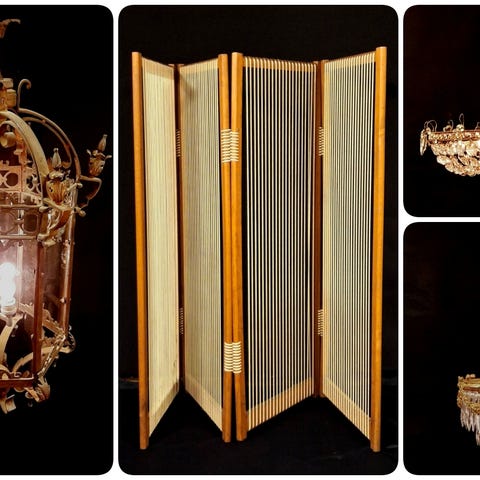 Antikk, fransk heiselampe, lampe, taklampe, lysekrone,