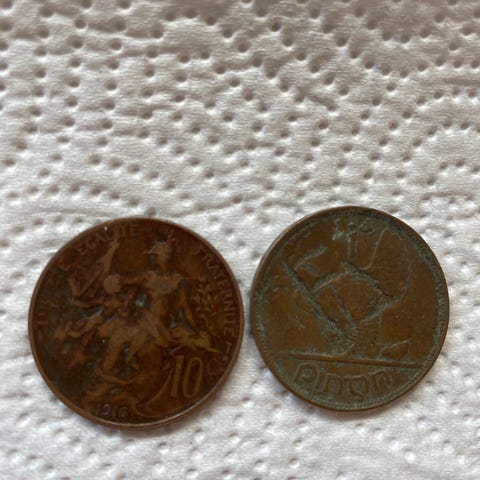 Gamle svært slitte mynter selges.