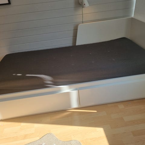 Flekke dagseng med to skuffer fra IKEA selges. Sengen har stått på ett gjesterom i halvannet år og er nesten ikke brukt.