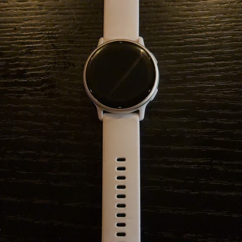 Jeg selger min Garmin vivoactive 5 smartklokke i gull med rosa tøyreim. Klokka har ingen skader og alle knapper fungerer som de skal. Kun noen bittesmå bruksmerker. Lader, kvittering og orginal silikon reim følger med.