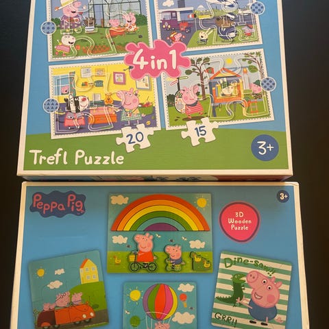 Motivene er Peppa Pig, Paw Patrol og Frozen Puslespillene er laget av kartong og er egnet for barn.