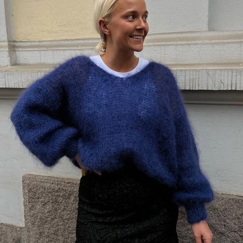 American Vintage VOGBAY PULLOVER i størrelse XS/S. Relativt stor i størrelsen så passer fint begge disse. Kjempefin genser i kort Lowell og herlig kvalitet; laget av mohairull og Alpaca i en rosa-lilla farge. Farge mest rett på siste bildet