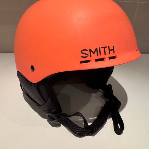 Smith Ski- og snowboardhjelm i størrelse M/L (56-59 cm), farge rød. Hjelmen har ventilasjon og justerbar passform. Egnet for bruk ved ski- og snowboardaktiviteter.