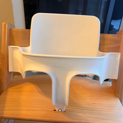 Selger deler (sittedel, fotdel) til Stokke tripp trapp stol, i fargen hvit. Er synlig brukt, men er mye bruk igjen.