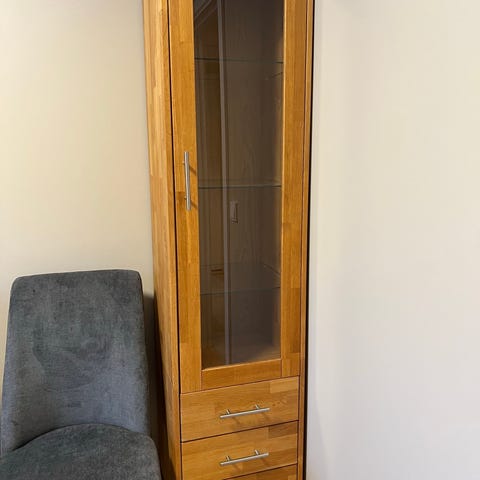 Skjenk/vitrineskap av eik i to deler gis bort mot henting.