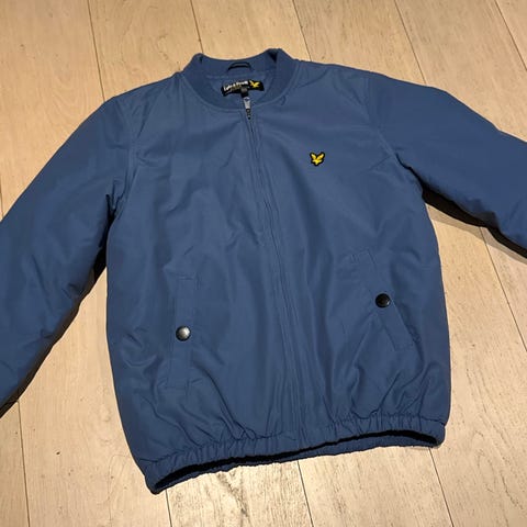 Lyle & Scott jakke for barn i størrelse 15-16 år , farge blå, vattert jakke. Jakken er mellomtykk, akkurat passe i følge sønnen. Han gir stort pluss for innerlommene og det fine foret i jakken.