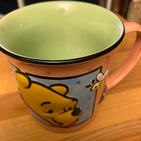 Tigergutten kopp i svart og oransje farge, laget av keramisk materiale. Koppen har et 3D Tigergutten -figur motiv som stikker ut fra siden. Innvendig er koppen oransje, mens utsiden er svart.