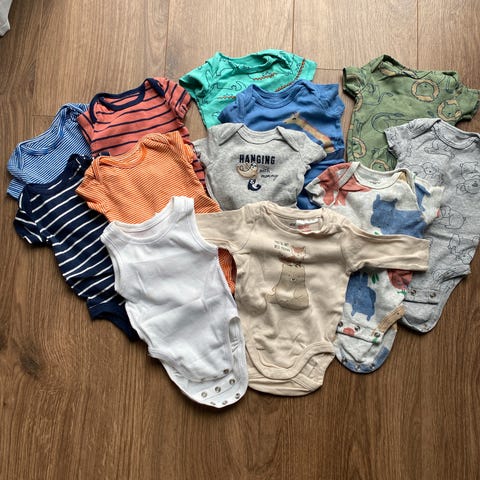 Klespakke med fire pent brukte bodyer fra h&m selges - passer til både gutt og jente. ✨ Tre omslagsbodyer og en vanlig.