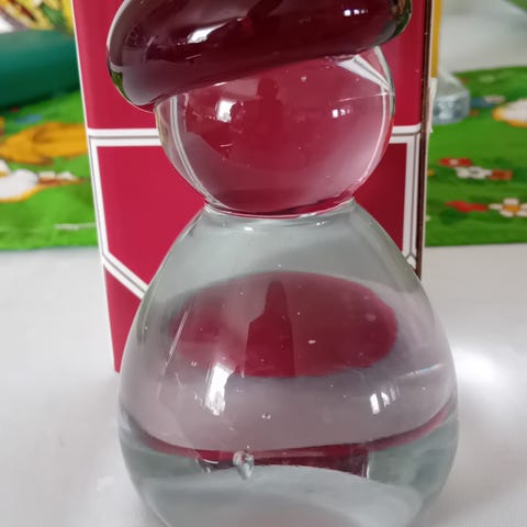 Så vidt jeg vet er dette den eldre munnblåste og håndlagede nissen. Den har gjennomfarget flott lue og alle er litt forskjellige av utseende. De lages ikke lenger.