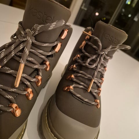 Jeg selger helt nye sko fra Kastel da de ikke passet meg. Skoene er litt små i størrelsen, så dette ville nok vanligvis vært en størrelse 40. Skoene er av typen «STRYN» og er både vanntette, har merinoull-fôr og har Vibram-såle som gir godt grep.