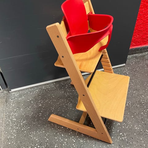 Hvitlakket Tripp trapp stol fra Stokke selges. Justerbar sitte- og fotplate som kan tilpasses barnets størrelse. Designet for barn for å gi støtte og komfort under måltider eller aktiviteter ved bordet. Vanlig bruksslitasje, men ingen skader.