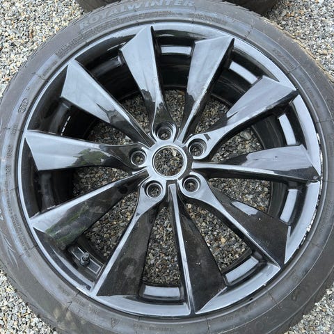 Selger 4 stk orginale 8.5x20 Tesla Performance felger i satin black med Nokian Hakkapillata R3 piggfrie dekk. Felgene passer alle Model 3 fra 2019 - 2026.