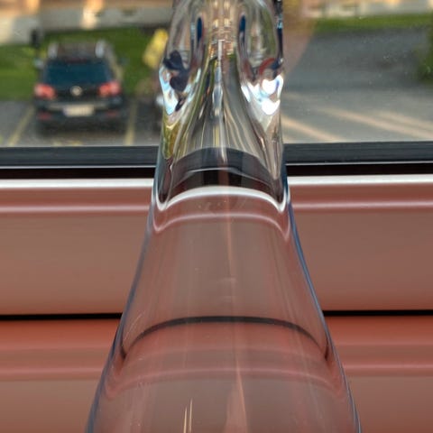 Vase i hvitt glass og blå striper
