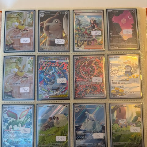 En perm full av vintage kort, og noe nyere. Her er det masse 1st Edition fra neo genesis, gamle holos, reverse Holo, rare, common, starters, uncommon, baby shinings fra shining fates. En skikkelig miks. Fastpris 40 kr per kort. Jeg tar dessverre ikke imot bud, eller pruting. Om du ønsker en rask handel er dette muligheten. Tilstanden varier på kortene, noen er helt strøken og andre har stor slitasje med creases. Jeg tar ikke flere bilder på tilstand, så her må du være forberedt på alt.