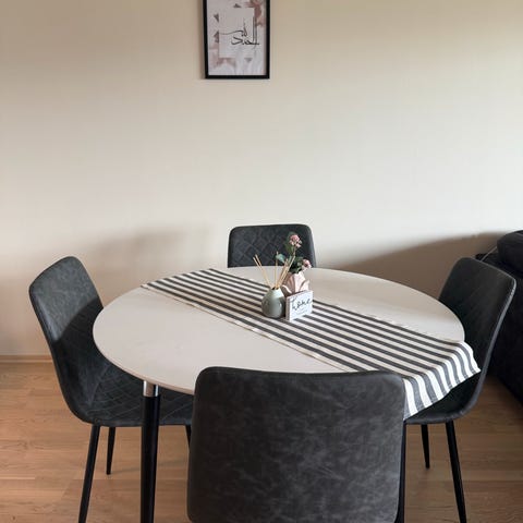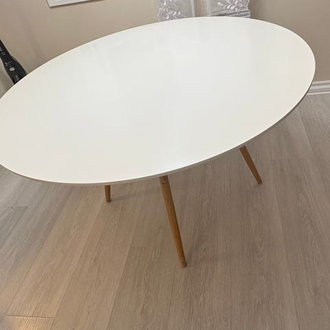 Rundt spisebord selges grunnet flytting. Bordplaten er malt hvit. Må hentes.