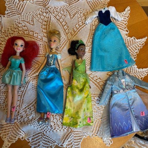 Dukken er en Ariel dukke, fra Disney filmen Den lille havfruen, mest sannsynlig en eldre modell produsert av Simba Toys fra 1990. Kjøpt på Disney On Ice.