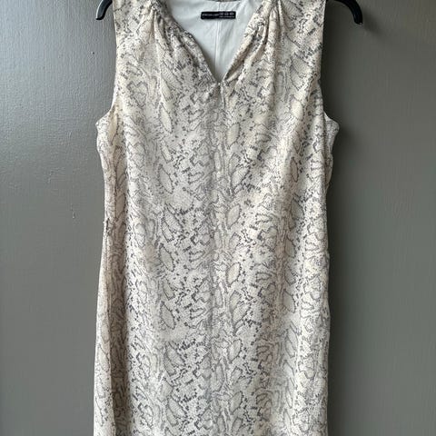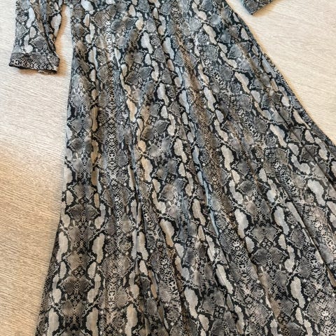 Kroppsnær slangemønstet kjole. Har hatt den på meg en kveld men følte meg for gammel for den… håper derfor andre kan ha glede av den da den har et nydelig snitt. Jeg kjøpte den på Bonprix. Jeg har flere annonser ute nå fordi jeg har ryddet i skap. Liker du stilen sjekk gjerne mine andre Finn annonser.