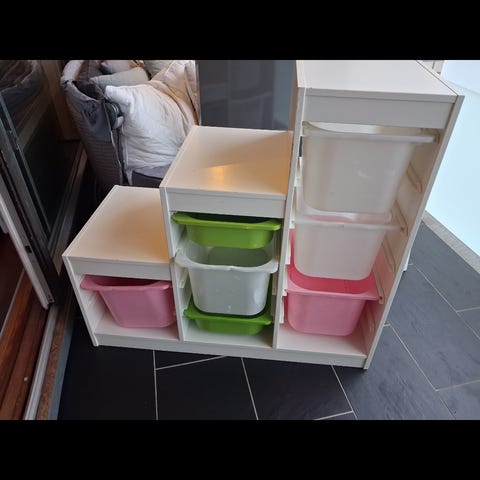 Se bilder for bruksmerker og at plasten på kanten på toppen er blitt misfarget av sol.