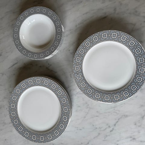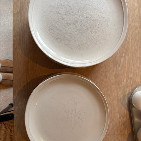 Fine tallerkner fra HM home. De er i en fin eggeskallfarge med forgyllet kant