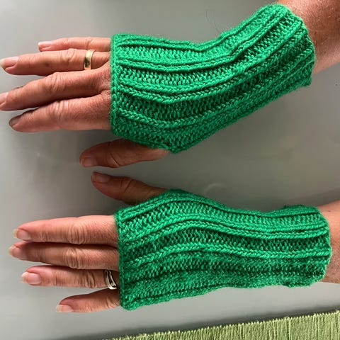 Håndstrikket, hjemmestrikket pulsvarmere i garn av 40% ull, 40% akryl og 20% nylon selges. Har i mange ulike garntyper, farger og størrelser. Kan sendes mot at kjøper betaler porto.