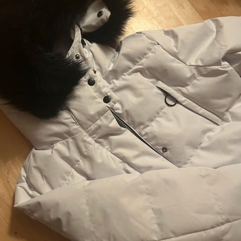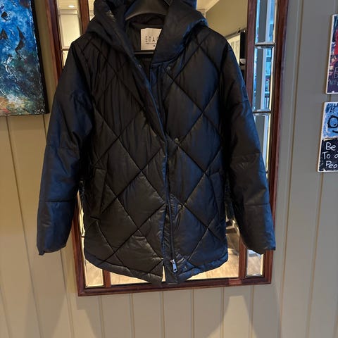 & Other Stories tykk boblejakke i størrelse L for kvinner. Jakken er babyrosa og laget av polyamid. Den har en vattert design med knappelukking og elastiske mansjetter, egnet som yttertøy i kaldere vær. Den fremstår som ny da den kanskje er brukt to ganger. Damen på bilde er 175 cm og bruker str L/40. Nypris 1999.selges 700 pluss ev fram på 73
