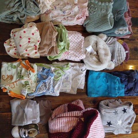 Noen av klærne har merkelapper/navn skrevet på lappen