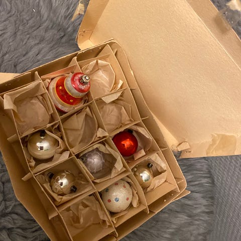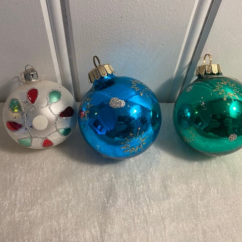 Forskjellige gamle/retro julekuler i plast og glass, noen i god stand andre i dårligere stand! Sjarmerende uansett.