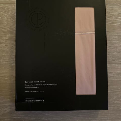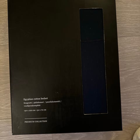 Helt ny, og ubrukt. Esken er åpnet, og sengesettet er vasket én gang, og så plassert tilbake i esken.