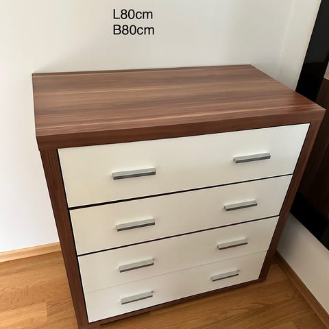 IKEA kommode med seks skuffer i blå farge. Kommoden har en dybde på 43 cm, en fri høyde under møbelet på 11 cm, og en oppbevaringskapasitet på 261 liter. Uttrekkskuffene har en dybde på 29,4 cm. Mål: 108 cm bredde, 115 cm høyde, 50 cm dybde.