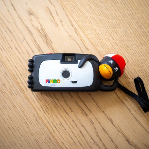 Barnekamera med skjerm. Kameraet har en størrelse på 14,6 cm x 8 cm og kommer i fargene rosa og grønn. Designet for barn med enkel betjening og holdbart materiale.
