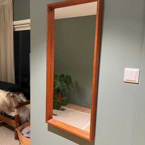 Vintage speil i teak i nydelig stand. Vanskelig å se at dette er 50 - 60 år gammelt