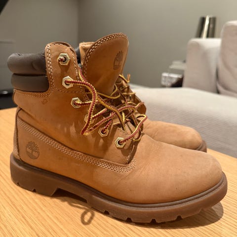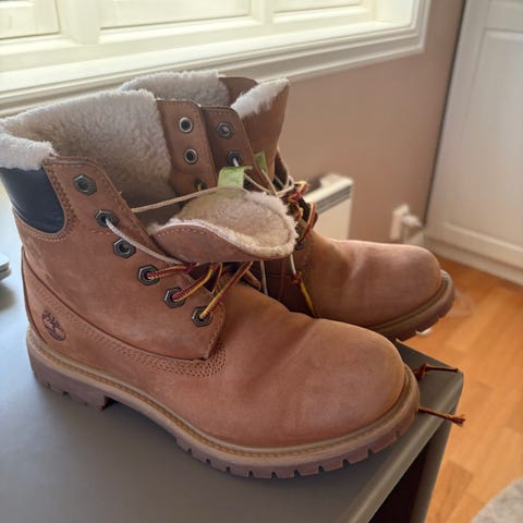 Timberland vintersko i størrelse 39, unisex. Støvlene er laget av gulbrunt nubuck-materiale med polstret ankel for ekstra komfort. Designet med fokus på holdbarhet og funksjonalitet. Skoene er minimalt brukt