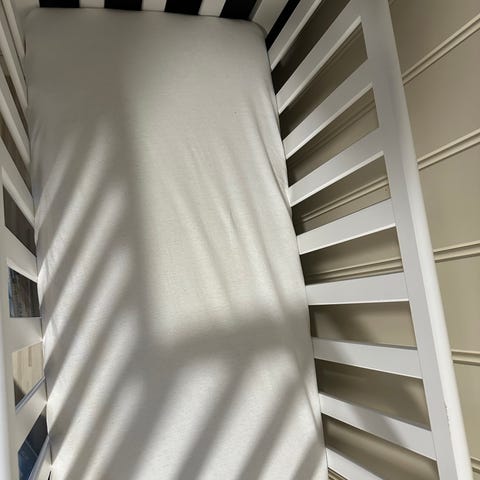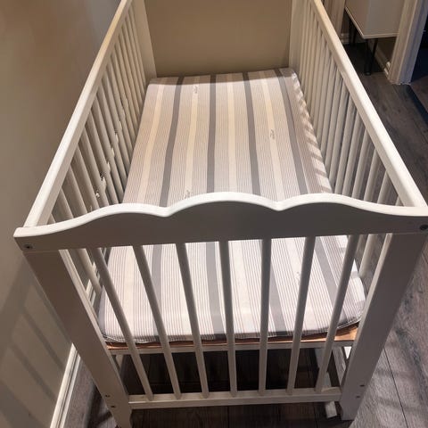 Den har en liten skade på den ene enden av sengen (se bilde), men ikke noe som påvirker funksjonaliteten/sikkerheten.