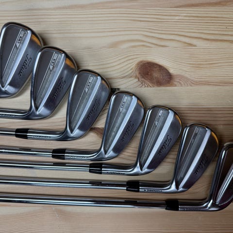 Selger et sett køller fra Titleist T100 serien. Køllene er kjøpt nye i 2021/2022 en gang. Ref serienummer på køllene. AMT S 300 skaft. Midsize grep fra Golf Pride. Kom gjerne med bud om du kan hente køllene i Stavanger.