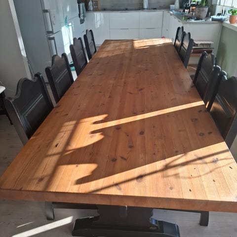 Kjempefint SOUL spisebord kjøpt på Skeidar. Materialet ble sagt å være fra gamle skip. Bordet er demontert og dermed lettere å få med seg.