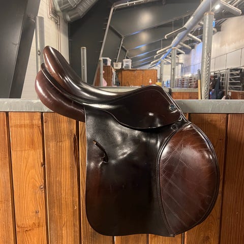 Otto Schumacher Connect II, sprangsal. Størrelse 17,5 i setet. Utskiftbar bom, og laget av kvalitetslær. Salen har bred kanal og god plass til manken så passer til de fleste hester. Salen ble kjøpt for ca 1 år siden. Grunnet eiers interesser og at jeg har hatt flere saler til hesten er den kun sittet i maks 4 ganger. Salen har høy komfort og er nydelig å ri i. Selges da den ikke passer min nye hest.