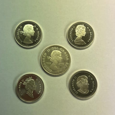 Mynten har motiv av et lønneblad på den ene siden og et portrett av dronning Elizabeth II på den andre siden.