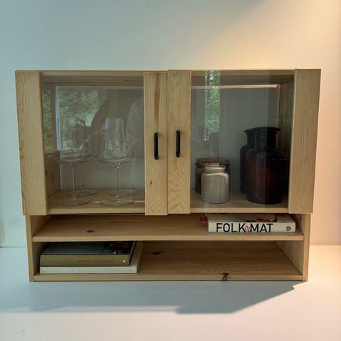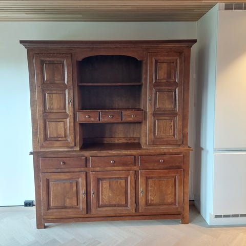 Veggseksjon, fabrikant Hartman (Hollandsk) selges, fortrinnsvis samlet. Seksjonen er i heltre eik i dører, skuffefronter og rammer. De to store skuffene inneholder cd-rack.