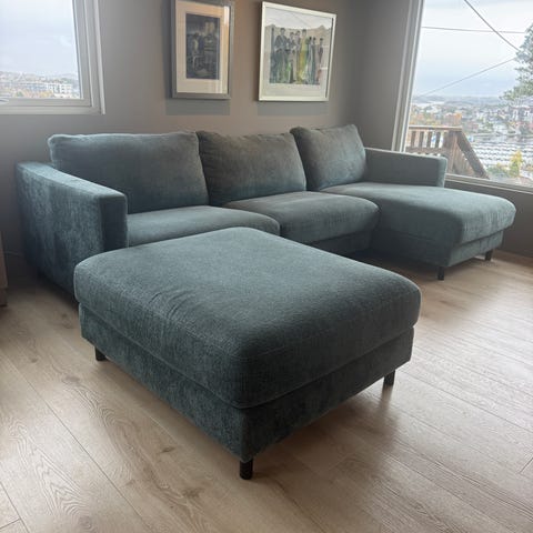 Fin og komfortabel sofa selges grunnet nytt hus. Alle trekkene kan tas av. Bare å ta kontakt ved spørsmål/ interesse.