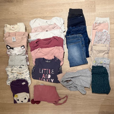 Både sommer og vanlige hverdagsklær. Samt 3 kjoler og 3 pysjer